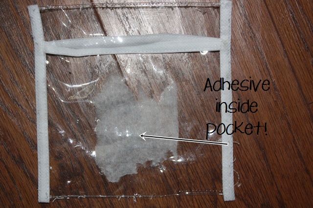 Normally my sticky stabilizer doesn’t “stay” on anything, but it sure stuck to this clear vinyl pocket! As you can see here I took it off trying to salvage the laundry bag.