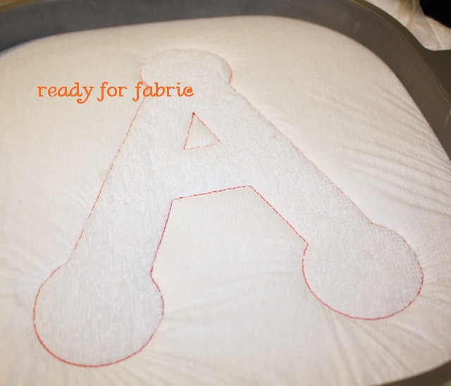 I’ve been asked a few times what I do/use to applique (not monogram) a towel (=terry loopy fabric). I was doing an applique on a towel today, so here you go!