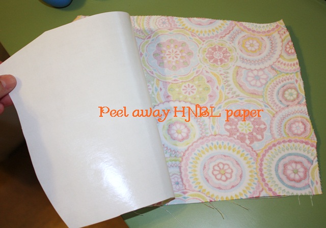 Peel away the HNBL paper which will leave the shiny HNBL layer on the back side of the fabric.
