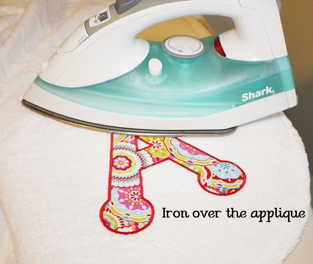 My applique is done and ready to iron. This will “set” the HNBL and fuse the fabric to the towel.