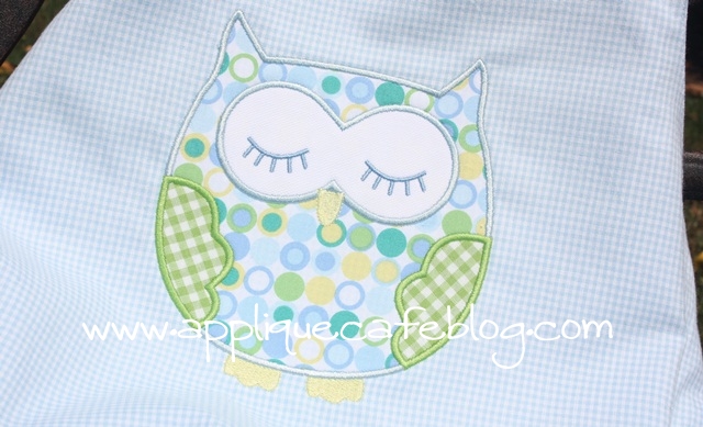 Here is the AC Sleeping Owl done on this light blue gingham A-line dress.