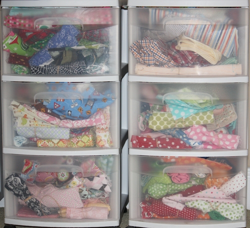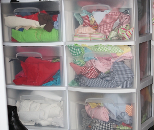 I needed not 1 of these fabrics! Well, I did need the orange gingham which is not pictured, but the rest were just to add to my collection. I am a FABRIC ADDICT, as well as a FABRIC HOARDER (meaning I can’t part with any of it)! Here’s proof…