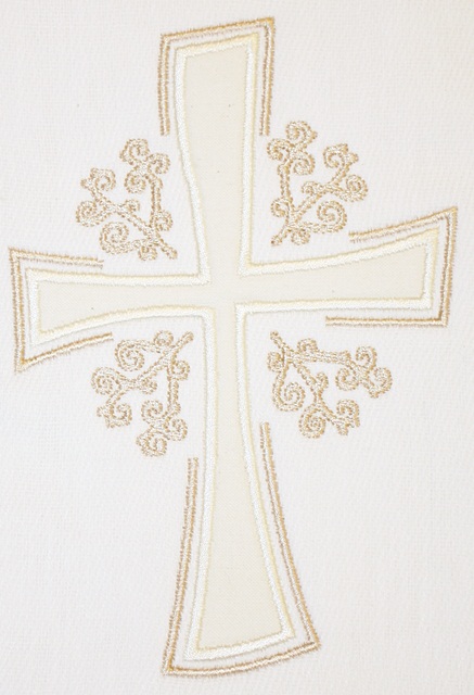 Virginia’s Cross ~ I did this on a burp cloth for an event at church ~ this was a door prize. Most of the attendees are moms of preschoolers or pregnant or have infants at home. I didn’t know the sex of course so I went with neutral! It looks really pretty and makes a great “church” burp cloth. I’d also love to see this on towels or hand towels or something!