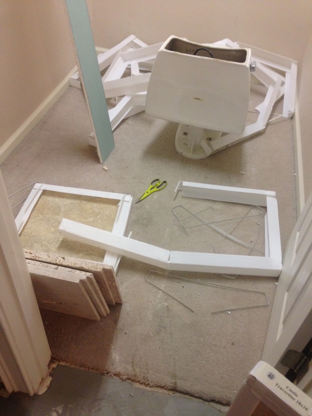 I have more reno photos to share! If you aren’t interested in bathroom before and afters, then go ahead and jump on over to Facebook! We are getting closer. These pics were taken since my last post but we have come a long way since these. I will update more soon! It has been fun, exhausting, stressful, time consuming, etc. but I know it’ll all be worth it when it’s all done. If I sound like I am complaining about redoing my bathroom, I AM NOT! 🙂 It’s just a process and it’s not all fun! I thrive on a clean, organized house. A renovation and having people in and out all day every day is rockin my world! 🙂