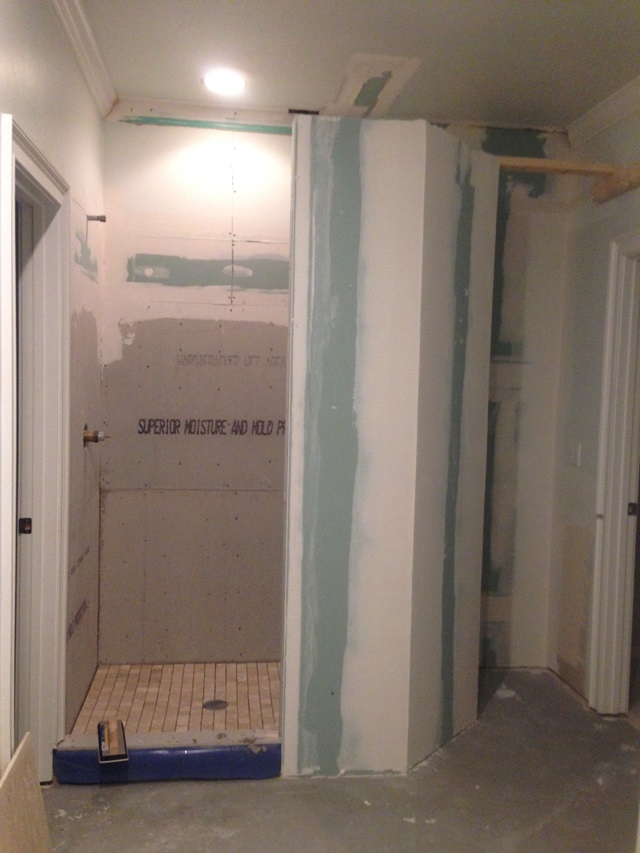 Here is the shower area again. I think I had a pic in my last post with the frame of the shower. As of today it’s fully tiled (but not grouted). More pics coming soon!