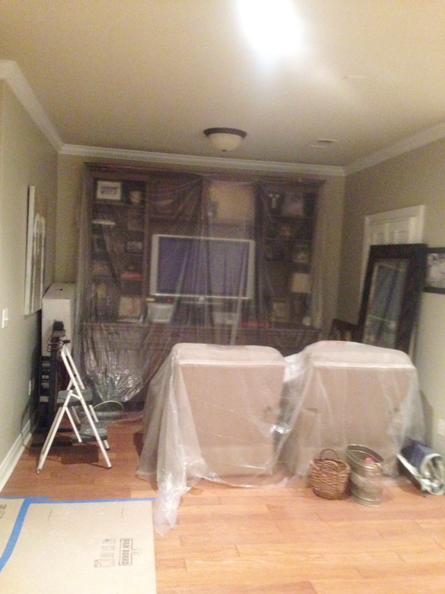 And lastly, this is our room. Thank GOODNESS we covered everything with drop cloths. There is a 2″ layer of dust on everything! Jeff and I look forward to moving back in! Hotel Mallory has been nice and I’ve gotten used to the queen sized bed, but we will be ready for normal again! 🙂