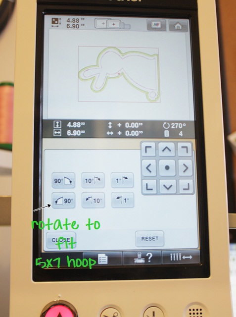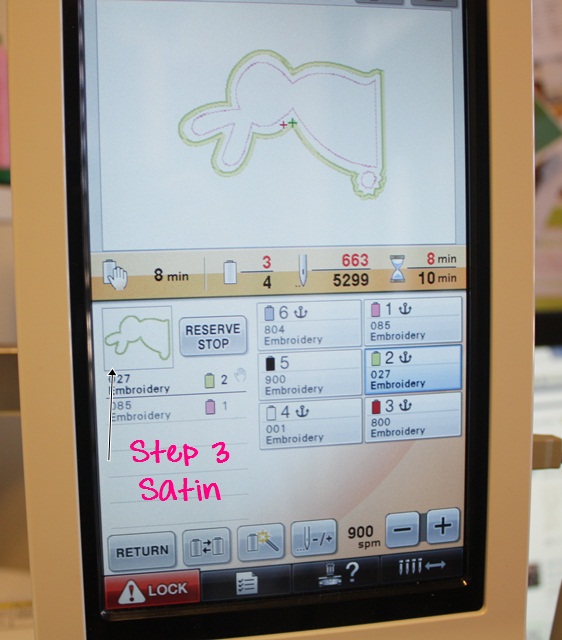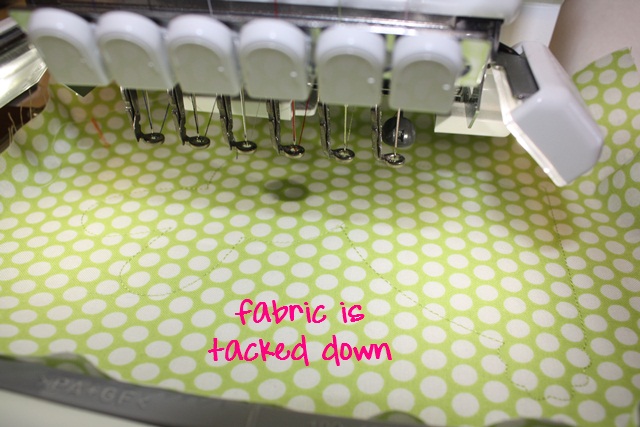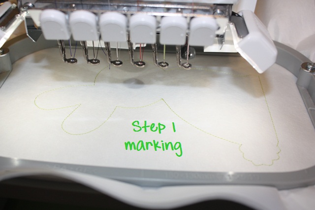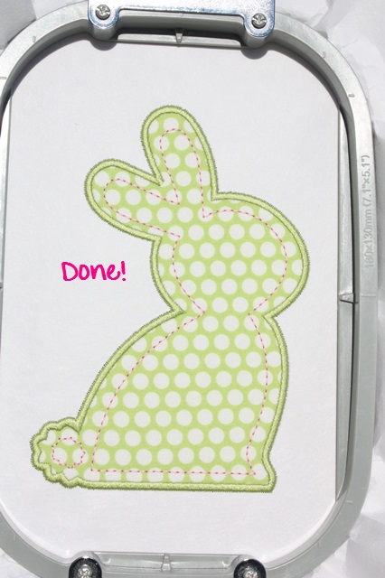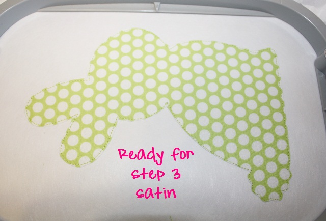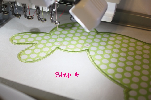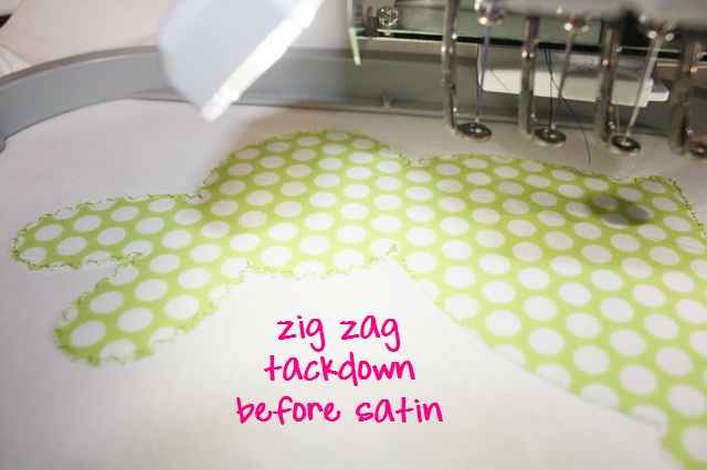 Closeup ~ I trimmed pretty closely around the stitching. Don’t forget the Heat N Bond Lite on your applique fabric!! I would say without it, this might end not end up so well. Wonder Under might work too ~ any fusible product.