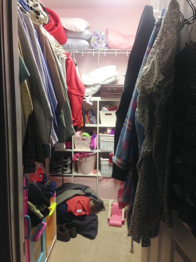 This is my old closet which will now be Jeff’s closet. It is a MESS!!! Eventually this will all be cleaned out and we will have new carpet! Again, I’m amazed that this will be clean and new soon cause it is NASTY right now! 🙂
