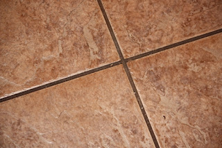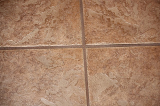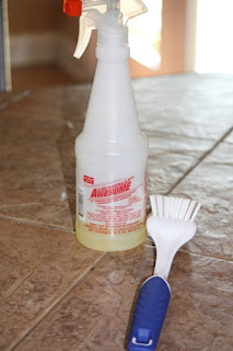 Most of you know we are getting our house ready to SELL! We spent most of the weekend organizing, putting stuff in the attic, cleaning, organizing some more, etc. I mentioned to Jeff that our kitchen tile MIGHT need cleaning. He didn’t seem to agree ($$$$) until I got to work last night after someone told me about this AWESOME spray that I happened to have in my cleaning supplies. So while I cooked bacon (we had breakfast for dinner), I also CLEANED some tile. This is our kitchen tile BEFORE! This is years worth of DIRT in the grout! We did have it cleaned once professionally, but other than that it’s the good ole mop every 2 weeks and sometime in between. Can you say FILTH!!!!!!!