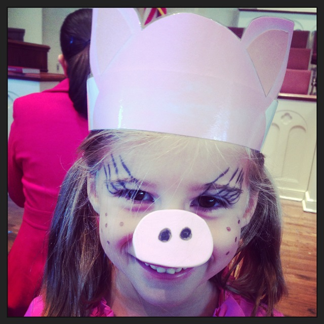The painted fingernails and toes are compliments of a birthday party she went to last night.