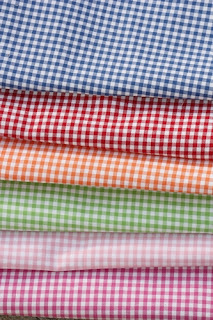 Today I took a trip up to Beth’s Heirloom for some regular orange gingham to get some pants made to match a top I bought for M. $87 later…. I decided to stock up on my Fabric Finders big 1/8″ ginghams so I got 1/2 yard of each of these. These are my FAVORITES to applique with! They are nice and thick and WONDERFUL!! I had most of these colors except the pinks, but figured I might as well stock up – they are like $6.50/yard.