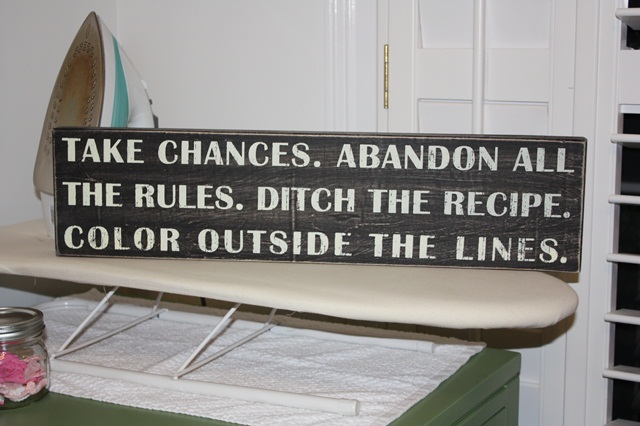 Sewing room is shaping up & looking good! Need some of your beloved orange in there…I’m going to email you a pic of fabric we are using for window treatments in daughter’s house….perfect match for your green furniture. On pinterest you had several exams of cubbie type shelves…those are available at Ikea and are next on my list of things for the Basement!