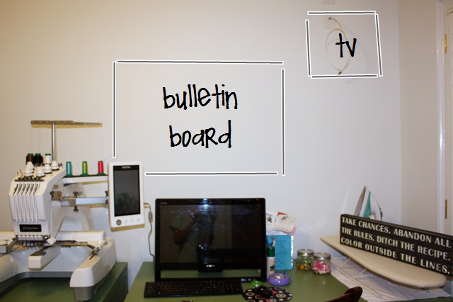 Above my computer I think a bulletin board is in order. Maybe this one from Hobby Lobby? Jeff also had cable installed so a TV will eventually go up in the corner, which is kind of exciting!