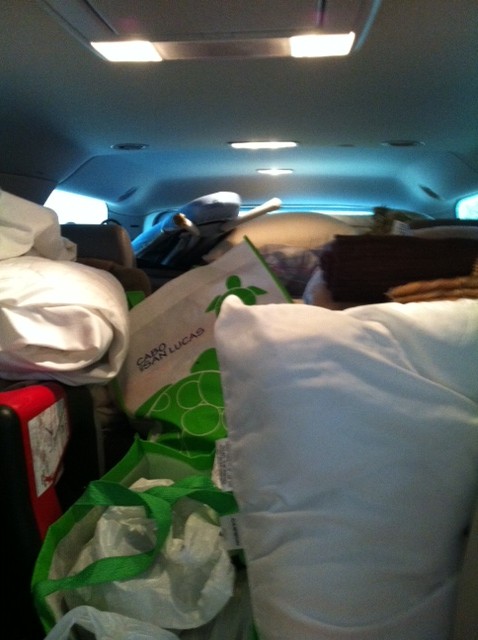 We survived a week at the beach (pictures down below) and MOVING! We got back from the beach last Saturday and moved this past Wednesday in to our permanent new home! It was an exhausting week full of cleaning, 457 trips with my car looking like this (below) and more cleaning, and then actually moving on Wednesday. We’re still unpacking but for the most part we are “IN” and loving it! We did have movers move us, but also took many many trips with our cars full of whatever we could fit in to them! Don’t you love how the ironing board is just thrown on top? Did I mention we moved the last week of June in close-to-100 degree heat?