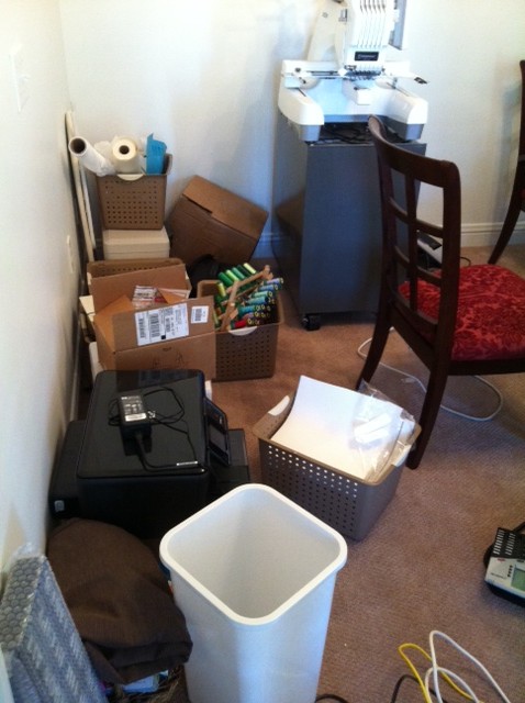 Here is my NON-dining room NEW SEWING ROOM (and the offices of Applique Cafe, i.e. Jeff, too). This was before: