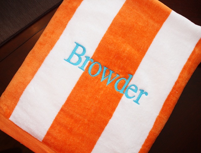 Today I monogrammed this beach towel from Target and it was a whopping $5.50! Orange, of course! Anyway, I took photos along the way so here is my post on monogramming towels!