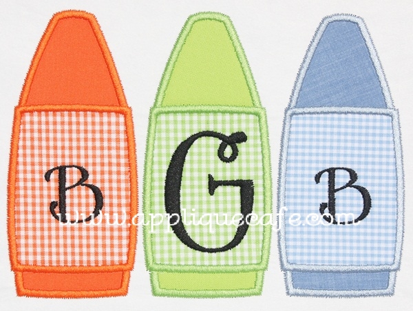 OK, really LASTLY, the 60% off Applique Cafe sale ends THIS  WEDNESDAY! I added 2 new designs this morning ~ Dog Truck and (chubby) Crayon Trio! Shown below I added initials in Specs or Grins & Giggles fonts, which is one of my favorites. Specs is now offered at Needleheads as a Monogram Wizard Plus font!
