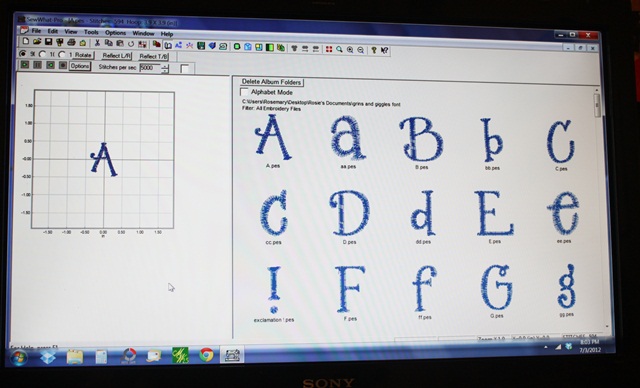 Most of you know I use Monogram Wizard Plus 99% of the time for my fonts, but if you are just starting out and are buying fonts off the internet to merge, then this might help! When you click on each letter, it will move it to your work area (and stack on top of the A in this case). You will then have to separate and arrange the letters.