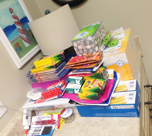 Y’all… it’s back to school time. All school supplies have been purchased (and some returned), but not a single one has been labeled or sorted by kid….. I DO have them stacked neatly in my laundry room….