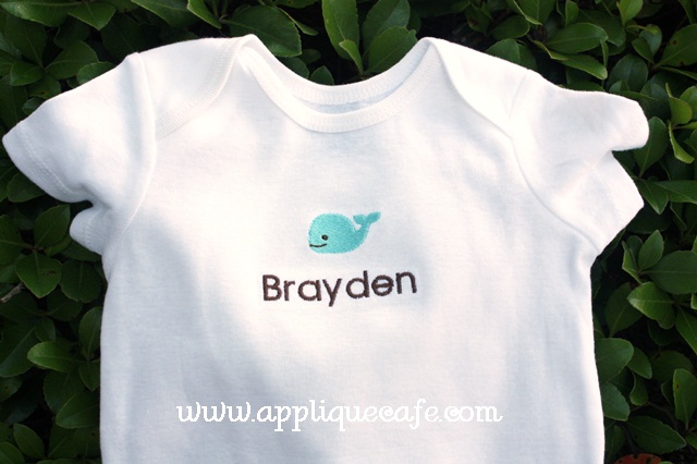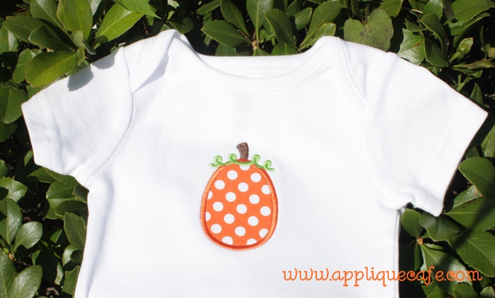 We have also been working on new designs, and this is a Mini Applique Pumpkin I did on a onesie the other day. Mini designs are great for onesies & baby gowns.