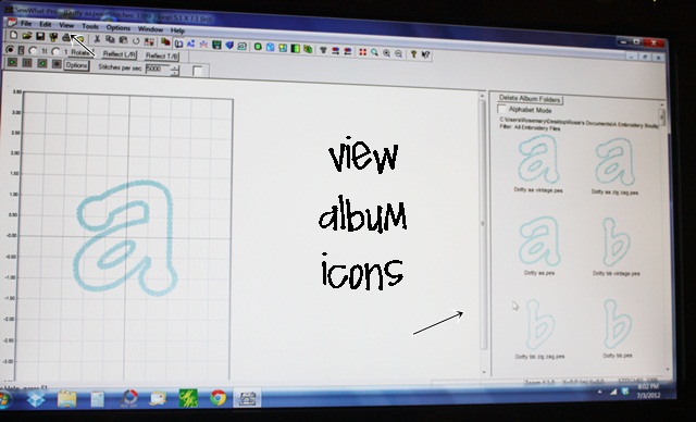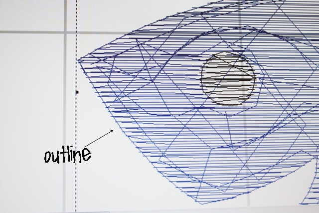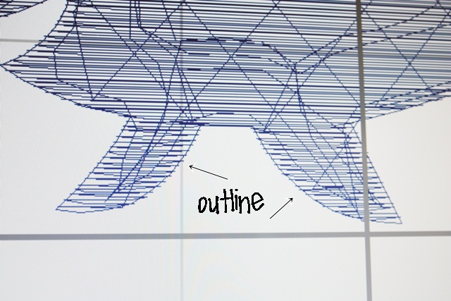I thought… why don’t I add something to the design that I won’t sew, but that will make and keep the design centered on the onesie. In the previous blog post I mentioned, I added a word or name underneath and then centered the applique and did not sew the name or word underneath. Today I thought.. why not add a “.”? So as you can see below, I added a dot (MWP Motif SySerif 26) to the right. My name and design is “centered” looking on the screen so it will appear centered on the onesie. The dot is also last in all of my steps, so I will just skip it!