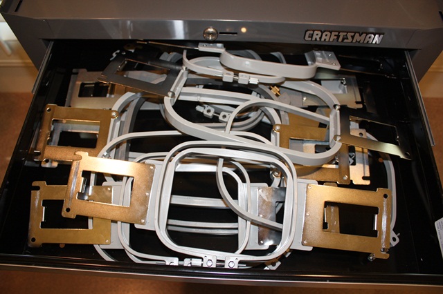 6) Mighty Hoops!! Again, not something we sell here at Applique Cafe, but again, check out my recent blog post on the super easy magnetic Mighty Hoops! The hoops can be used alone, or with a fixture to help with centering and easy hooping. Check out that blog post HERE. Below is the 6.5″ square Mighty Hoop and Fixture, and I’m giving it a workout this week monogramming towels!