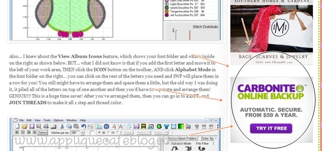 Now, pay close attention to the CARBONITE button! Being in the web business with digital products, if I’ve heard it once I’ve heard it 2,356 times {and usually on a weekly basis} from customers…. “MY COMPUTER CRASHED AND I LOST EVERYTHING!!!!!!!” Most of these emails are urgent and dramatic b/c said customer has just lost thousands of dollars worth of digital embroidery files! Applique Cafe now has the Your Account feature where you can log in and access any purchases you’ve made since 11/8/11. However, this system is not foolproof! There are also like 2,356 applique websites out there now. It may take you a while to email them all or to log in to access those designs you spent your hard earned money on!