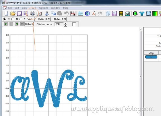 PRINT IT!! This is not rocket science and I’m probably not telling you anything you don’t already know. However…. I have been using this feature a lot lately so I thought I’d share. Old age maybe?? Do you ever wonder how big to make a monogram or where to put it? As you all know, I use Monogram Wizard Plus and Sew What-Pro software and both allow you to print what you are working on which is GREAT.