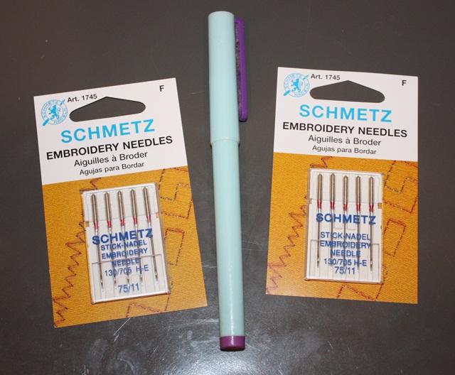 I got my name together merged with a couple of cute mini designs. The peace sign is from Embroidery-Boutique and the Flower is from Applique Momma (it also has a peace sign in the middle). I used Monogram Wizard Plus Specs font. I love the font and it’s great for initials, but names are tricky. It spaces out rather strangely. I will explain all that in my next MWP post this week, but in the meantime you can see that I layered this name together IN Monogram Wizard Plus so that it all lined up and/or was spaced correctly. Layer 1 – A, Layer 2 – nn, Layer 3 – a. I then saved it and merged it in to my Sew What Pro. I added the mini designs, centered the whole thing and then saved it to my machine. I saved this in a 5×7 hoop space but will use my Fast Frames.
