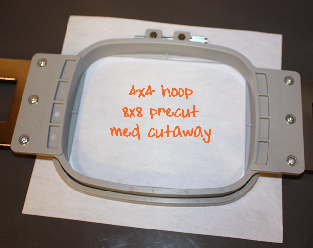 I very loosely cut my sticky stabilizer (from Sewingmachine.com). You want to cut it bigger than your frame so that it’ll overlap the edges of your frame.