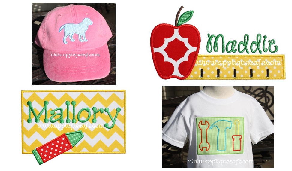 Here are our new designs for this week, which include a couple for BACK TO SCHOOL!! We also added a new “Patch Applique“. I love the TOOLS and these new patch designs are only 1 fabric and super easy to sew.