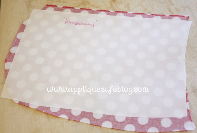 I am using red Ta Dot fabric because I have a pair of little ruffle shorts she is going to wear this with. I use Heat N Bond Lite on the fabric (of course).
