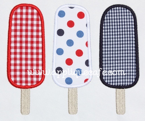 Lastly, I posted on Facebook yesterday that you can make pretty much any design patriotic by using red, white & blue fabric, like in the outfit above. Here is also a pic of our Popsicle Trio design done in RW&B fabrics! Have a great week!