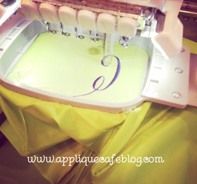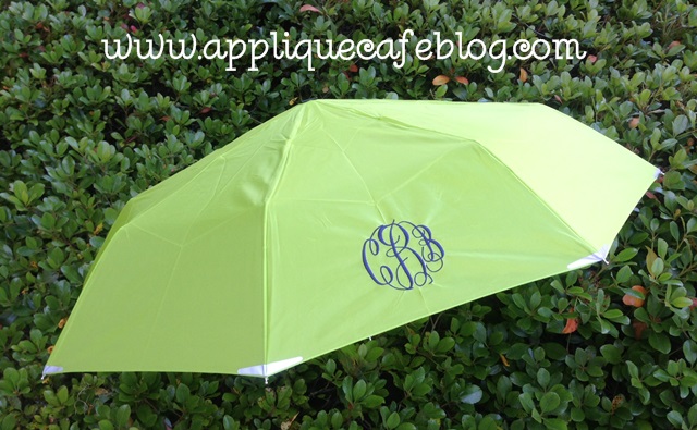 On the umbrella, I used my 4×4 hoop so the monogram is probably as close to 4″ as I could get it!