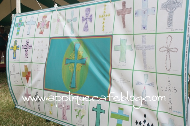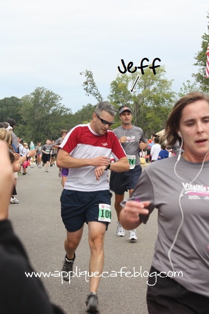 Applique Cafe was excited to sponsor the Pre-Race Nourishment Station! Most of you know we have been selling the Virginia’s Cross applique design with all proceeds going to Virginia’s Run. We’ve sold 232 cross designs total thus far, some at regular price and some at various sale prices. All proceeds went towards the sponsorship of the race, and the rest came from Jeff & I. We will continue to sell Virginia’s Cross and proceeds will always go to Virginia’s Run, whether through donations throughout the year, or towards next year’s 2nd Annual Run! We’re excited to be a part of this event! We also got to keep our banner so I’m thinking we need to find a spot for it in our sewing room/office!! ps: the announcer announced Applique Cafe several times throughout the morning as a sponsor and had to be corrected by Jeff when he called us “Apleeeeek Cafe”!
